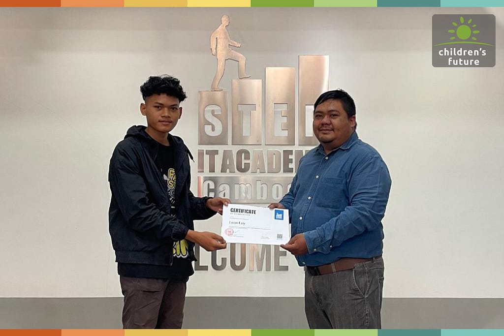 Despite everything, Luy never gave up. He studied hard, even when things got tough. He eventually graduated from high school and moved to Phnom Penh to pursue higher education. Luy originally wanted to study Engineering, but the degree and required computer were well outside the scholarship from CFI. He then decided to study Graphic Design, allowing him to get a decent job while he continues to fight for his dreams.In his own words, Luy shared: